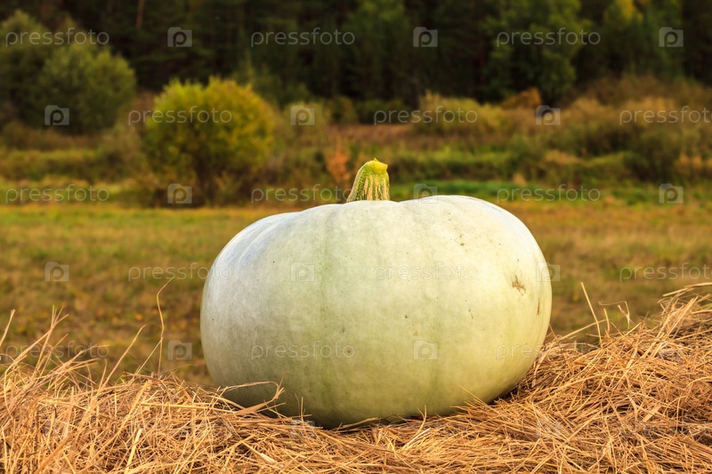 Тыква на сене, зеленая