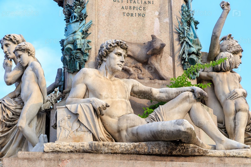 Турин, Италия. Памятник Камилло Бенсо, графу Кавури, премьер-министру итальянского единства. Скульптор Джованни Дюпре (1817-1882) на площади, широко известной среди туринцев как «Карлина»