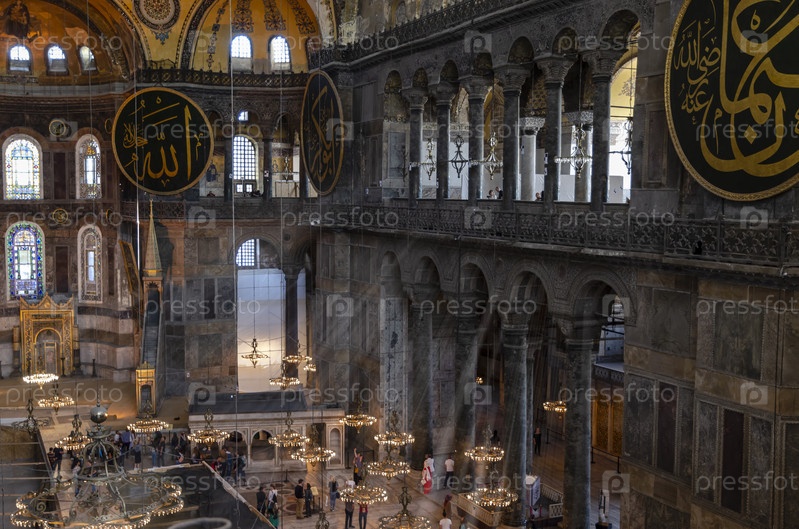 СТАМБУЛ, ТУРЦИЯ: 30 апреля 2018 г. Интерьер собора Святой Софии (Аясофья) в Стамбуле, Турция - архитектурный фрагмент
