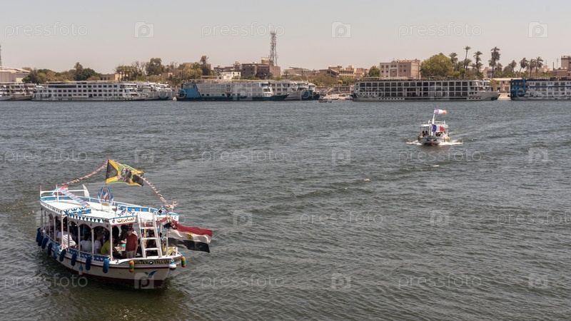 Луксор, Египет - 11 апреля 2021 года: Туристы пересекают Нил в Луксоре на лодках. Путешествие по Египту