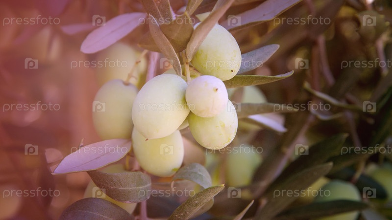 Оливки на оливковом дереве осенью. Изображение сезонной природы