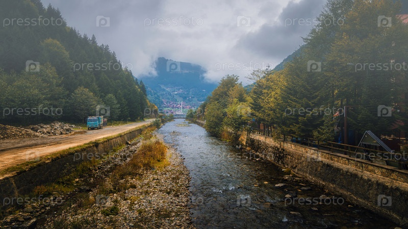Одно из самых красивых туристических мест в Трабзоне, Турция. Узунгель - горная долина с форелевым озером и небольшой деревней