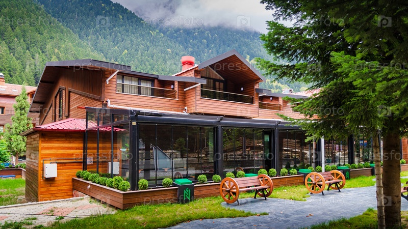 Трабзон, Турция – 9 октября 2018 г.; Узунгель (Длинное озеро) - район самых красивых туристических мест Турции. Горная долина с форелевым озером и небольшой деревней в Трабзоне, Турция. Популярное направление