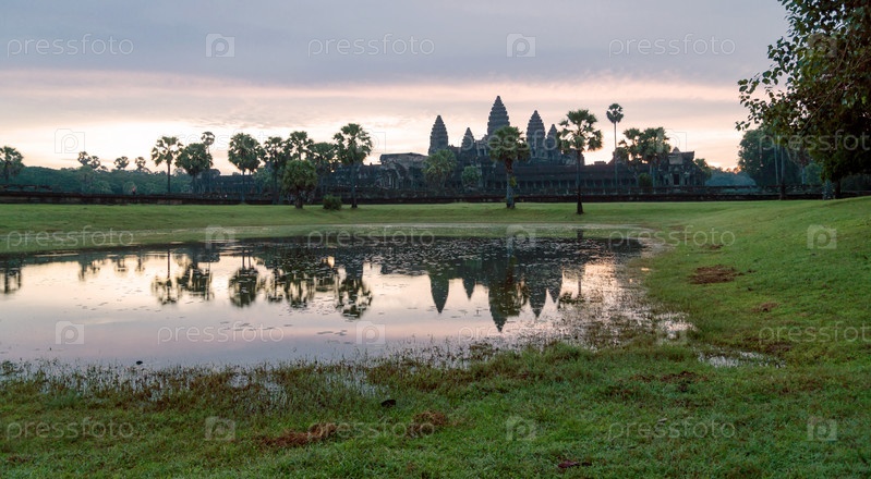 Потрясающий рассвет и отражения в Ангкор-Ват - Сиемреап - Камбоджа Самый большой религиозный памятник в мире