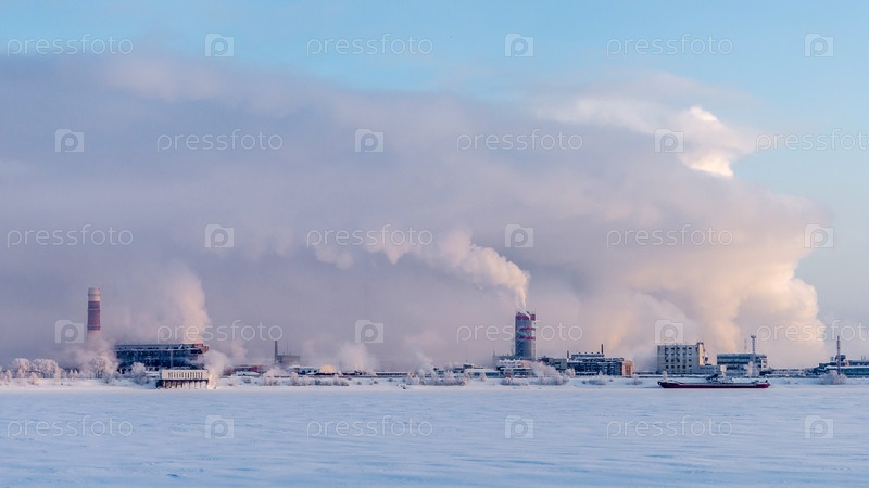 Зимний пейзаж в районе усадьбы Строгановых (палата), Усолье, Пермский край, Россия