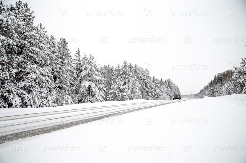 Зимняя дорога и заснеженные деревья. Минималистичный зимний пейзаж был и в России