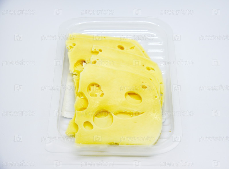 Нарезанные кусочки желтого сыра с отверстиями на тарелке. Нарезанный сыр крупным планом. Вкусные кусочки сыра