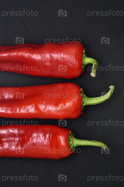 Большой красный перец на черном фоне. Острый красный перец. стручковый перец