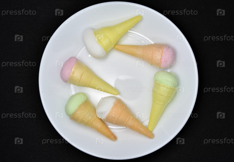 Зефир в виде мороженого на белой тарелке. Красочное мороженое