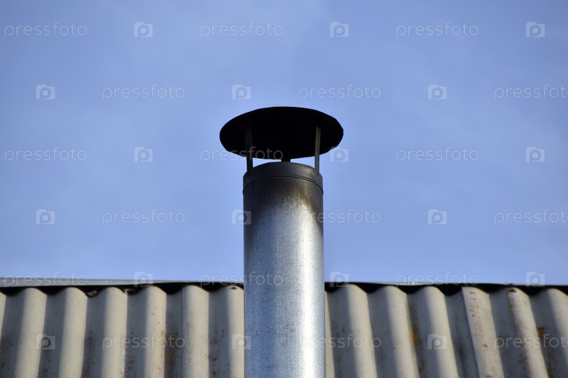 Серебряная железная дымоходная труба печи в доме