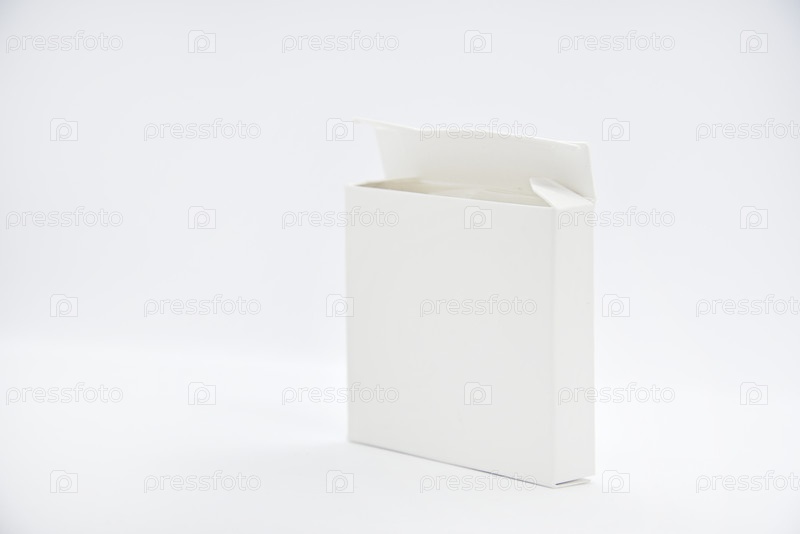 Белая бумажная коробка на белом фоне. Белая картонная упаковка