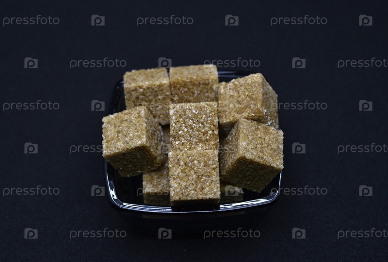 Кусочки тростникового сахара в миске. Рафинированный сахар. Сахар кусками в чашке