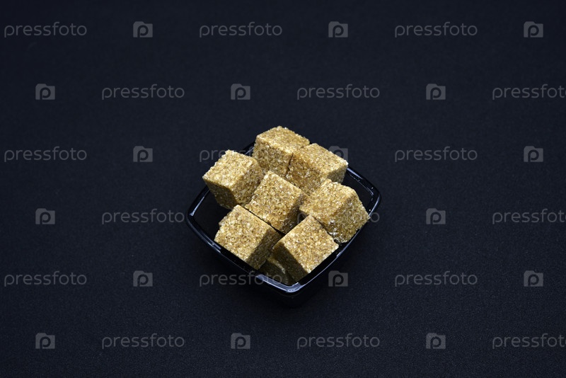 Кусочки тростникового сахара в миске. Рафинированный сахар. Сахар кусками в чашке