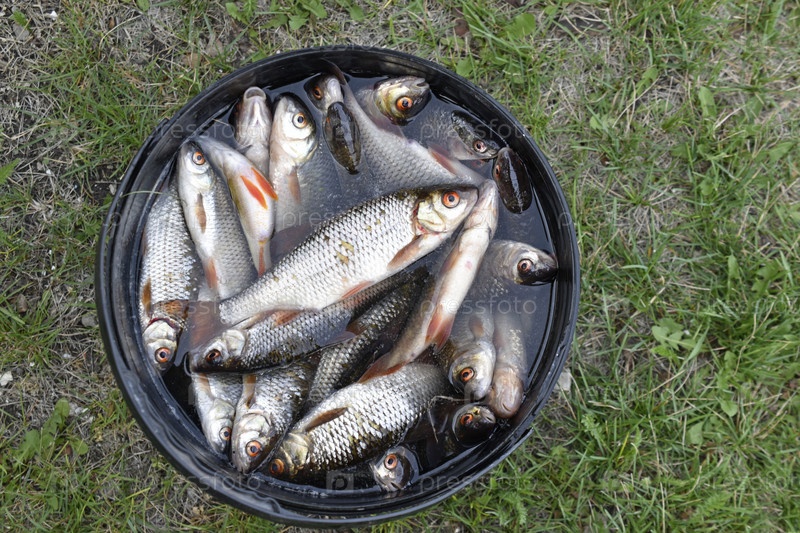 Свежевыловленная рыба-лещ в ведре летом