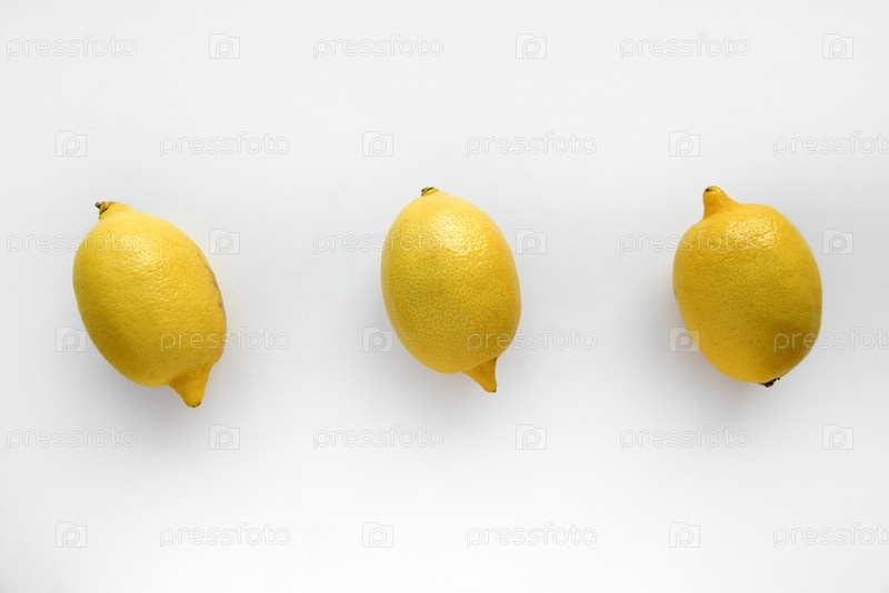Желтый спелый лимон на белом фоне. Сочные лимоны крупным планом. Изолят плода желтого лимона