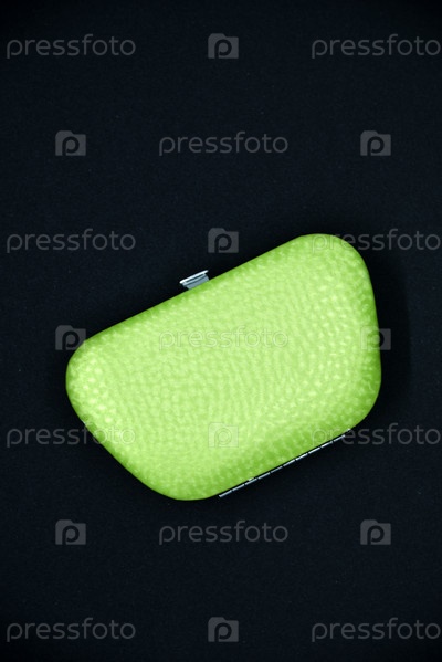 Зеленый маникюр на черном фоне. Ножницы и щипцы для ухода за руками
