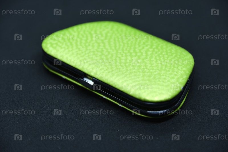Зеленый маникюр на черном фоне. Ножницы и щипцы для ухода за руками