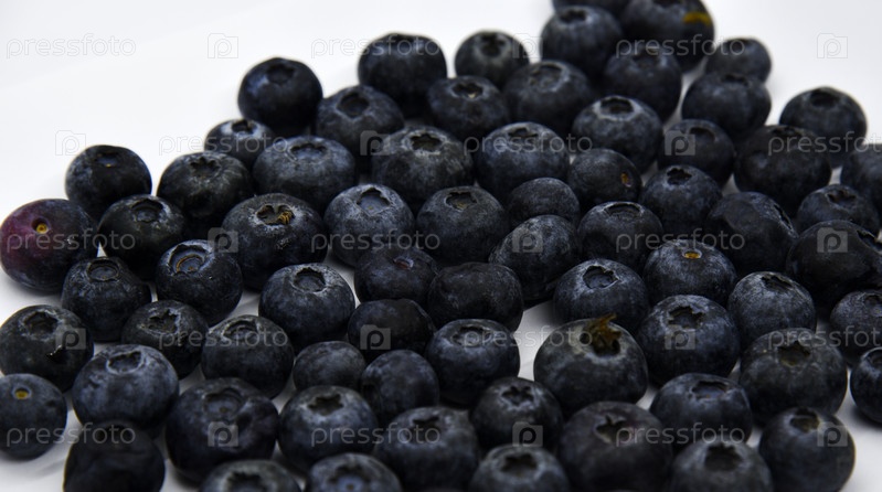 Красивая фиолетовая черника на белом фоне. Сочная черника. Ярко-голубая черника