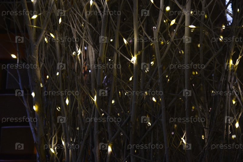 Светодиодные лампы на деревянных ветках. Ночная подсветка светильников и скульптур