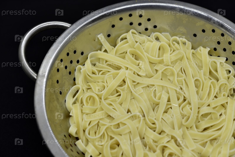 Вермишель после варки. Паста в дуршлаге