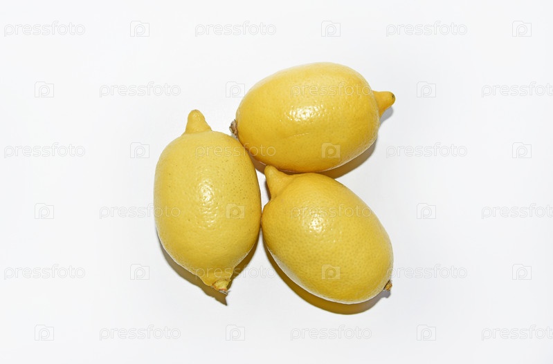 Желтый спелый лимон на белом фоне. Сочные лимоны крупным планом. Изолят плода желтого лимона