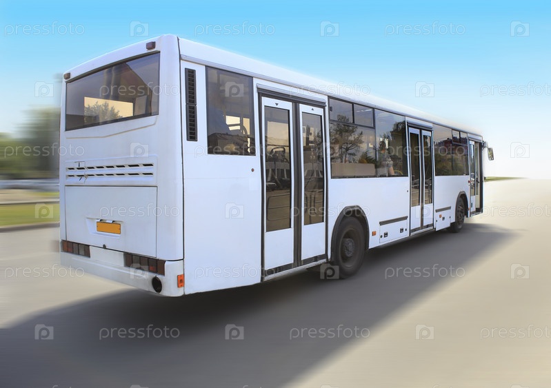 Белый автобус едет по дороге