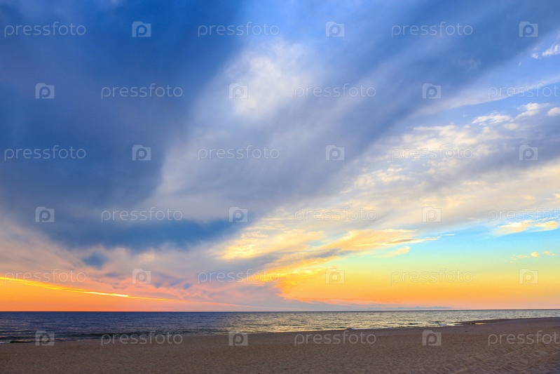 Красивое облачное небо на рассвете над морем