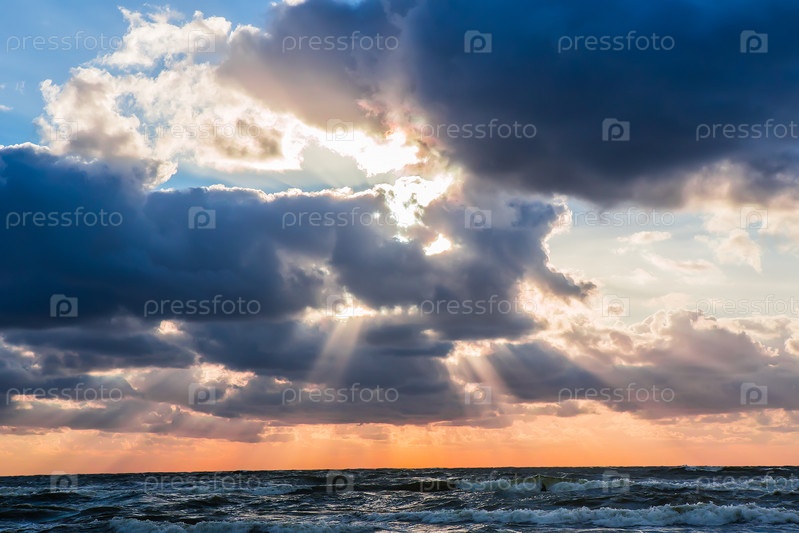Закат в облачном небе над бурным морем