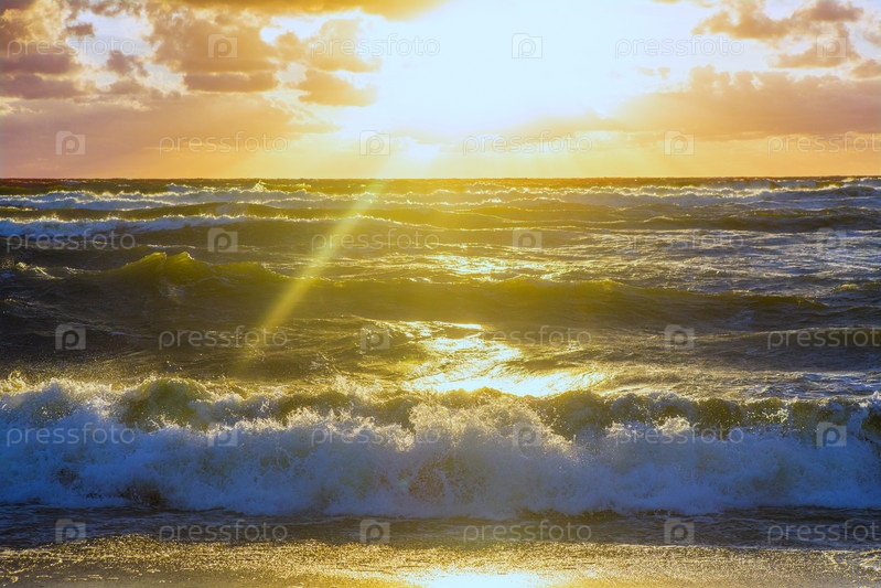 Шторм на море во время заката