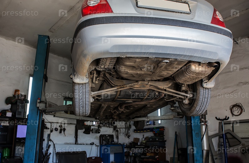Автомобильный подъемник в автомобильной мастерской