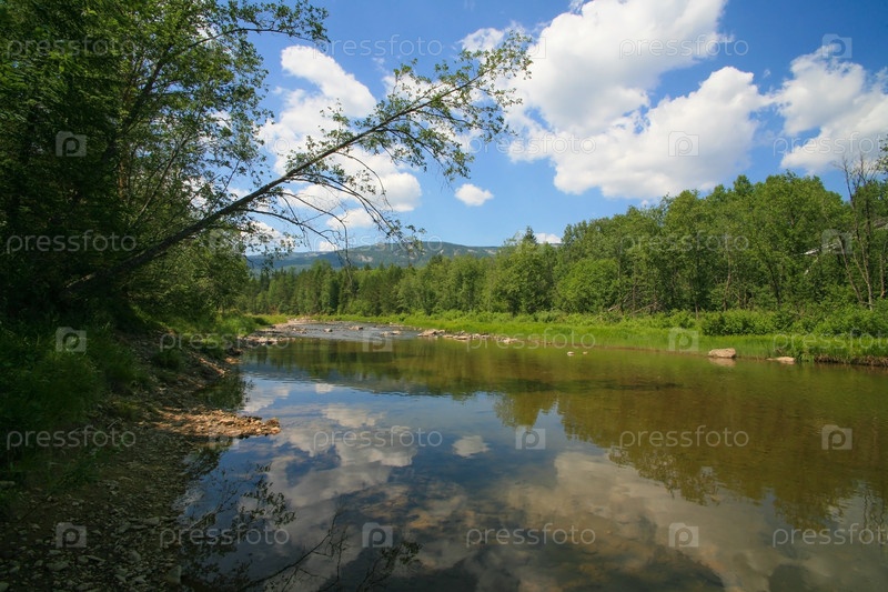 Пейзаж река гора лес небо