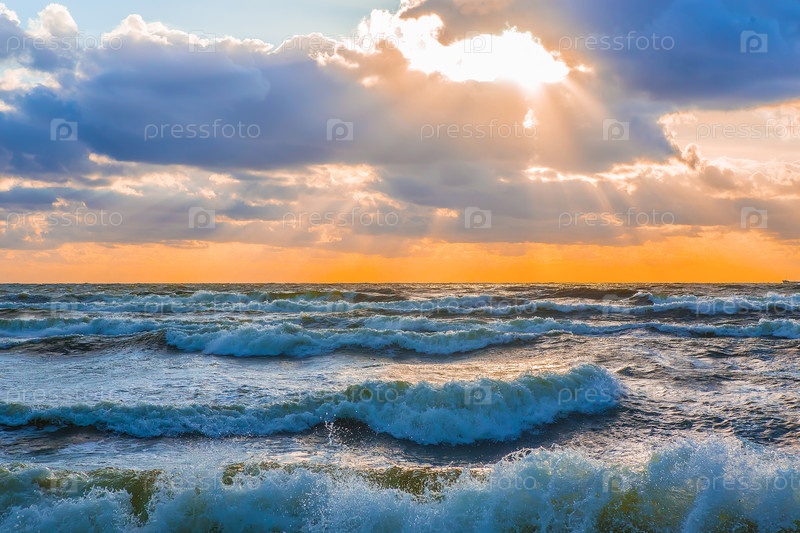 Закат в облачном небе над бурным морем