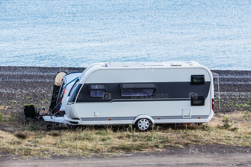 Прицеп-кемпер у моря возле лагуны