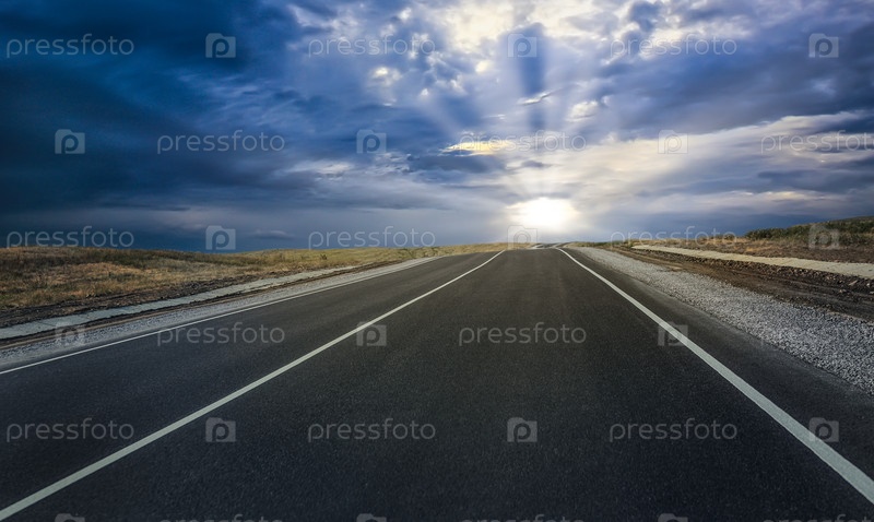 Закат над загородным шоссе