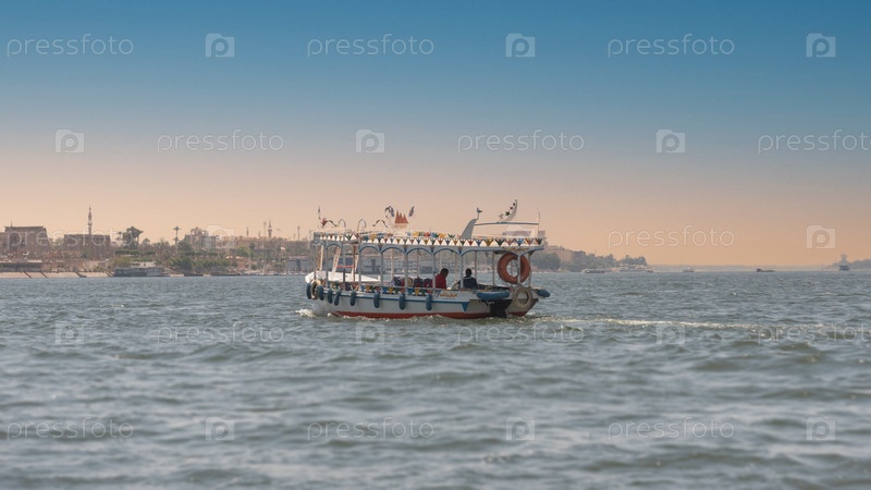 Луксор, Египет - 11 апреля 2021 года: Туристы пересекают Нил в Луксоре на лодках. Путешествие по Египту