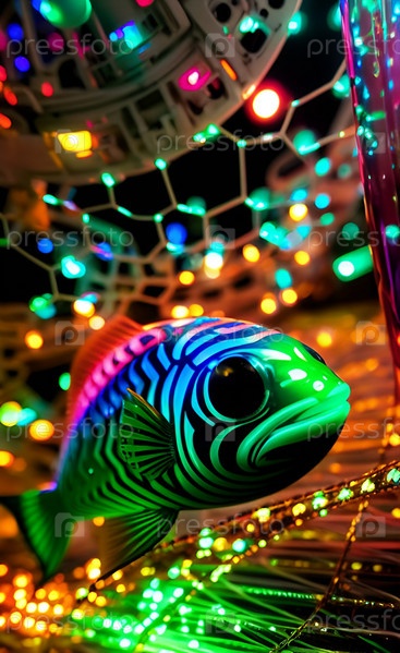 Абстрактный фон с причудливой неоновой рыбой