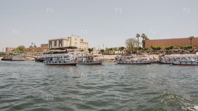 Луксор, Египет - 11 апреля 2021 года: Туристы пересекают Нил в Луксоре на лодках. Путешествие по Египту