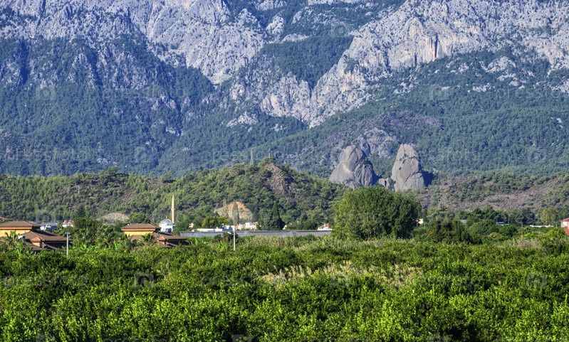 Пейзаж городской мечети в Кирише, Кемер, Турция