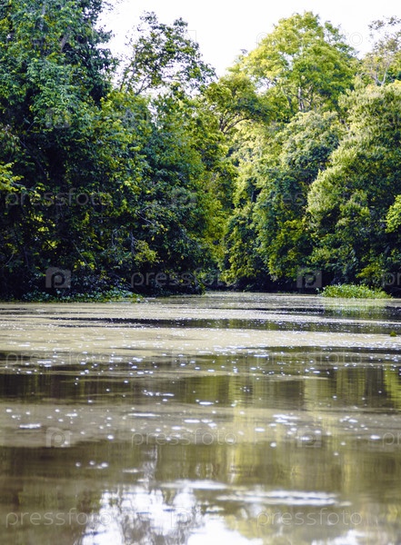 Кинабатанган, Малайзия - 9 мая 2013 г.: Туристы в круизе на лодке по реке Кинабатанган, одной из самых разнообразных концентраций дикой природы на Борнео