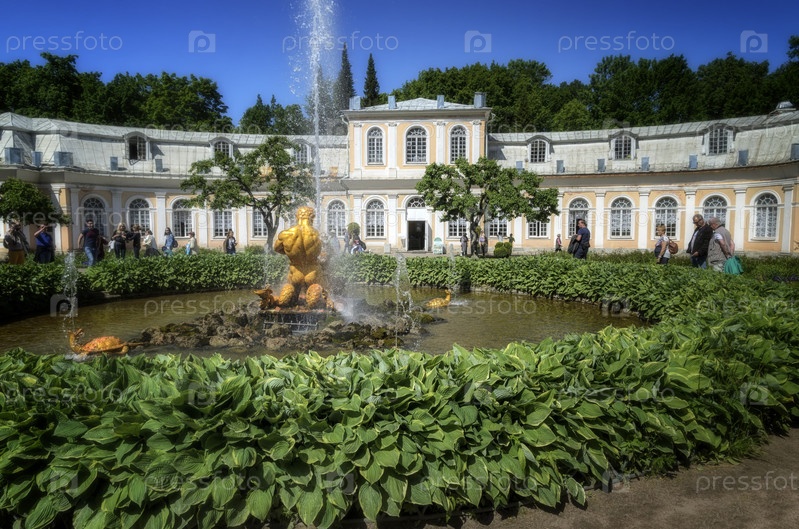 Петергоф, Россия - 29 июня 2017 г.: Прекрасный вид на Большую оранжерею в осенний солнечный день 29 июня 2017 г. в Петергофе, Россия
