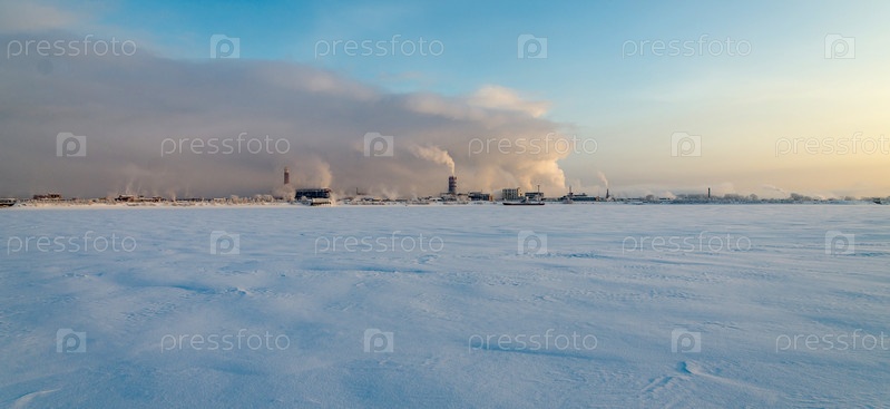 Зимний пейзаж в районе усадьбы Строгановых (палата), Усолье, Пермский край, Россия