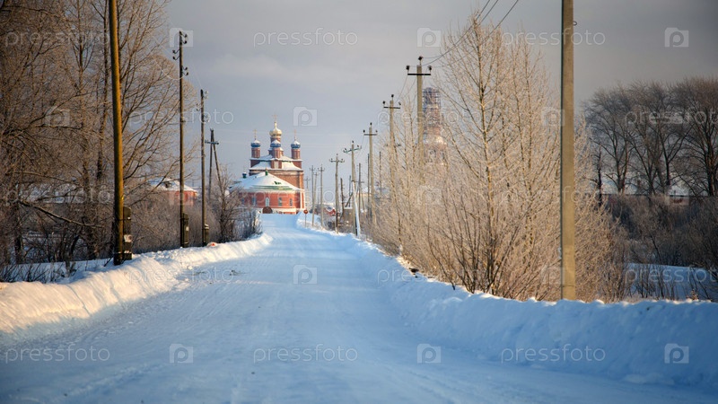 Зимний пейзаж в районе усадьбы Строгановых (палата), Усолье, Пермский край, Россия