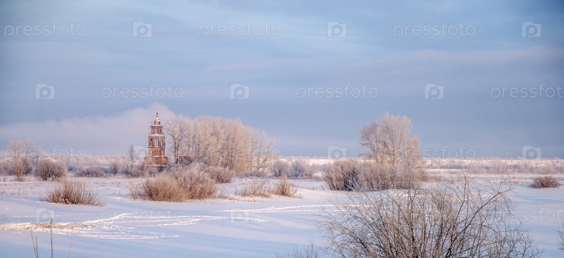 Зимний пейзаж в районе усадьбы Строгановых (палата), Усолье, Пермский край, Россия