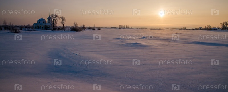 Зимний пейзаж в районе усадьбы Строгановых (палата), Усолье, Пермский край, Россия