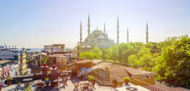 Вид на Голубую мечеть (Султанахмет) с крыши здания в Стамбуле