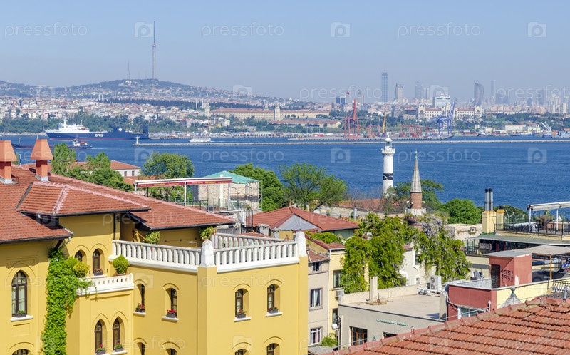 Вид на Босфор с крыши здания в Стамбуле 30 апреля 2018 года