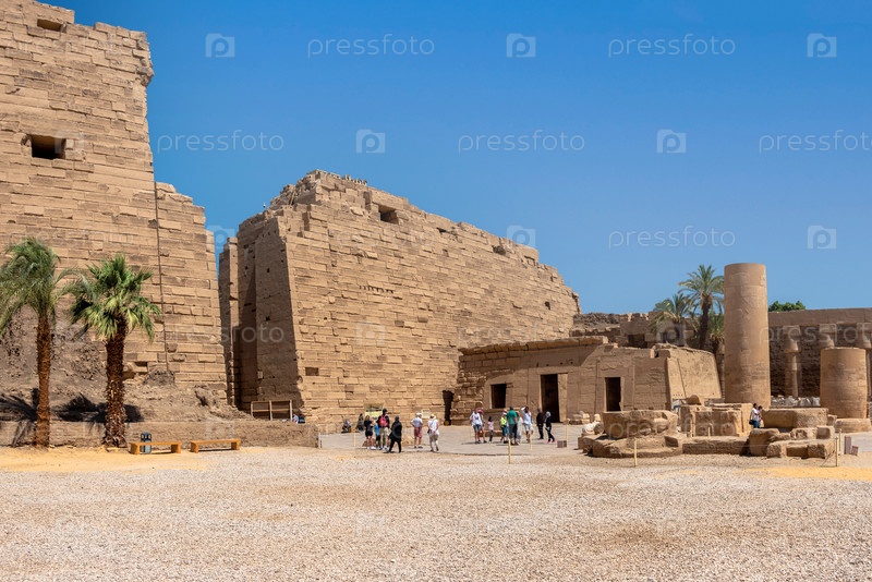 Древние руины Карнакского храма в Луксоре (Фивы), Египет. Самый большой храмовый комплекс древности в мире. Всемирное наследие ЮНЕСКО. Вид с аллеи сфинксов