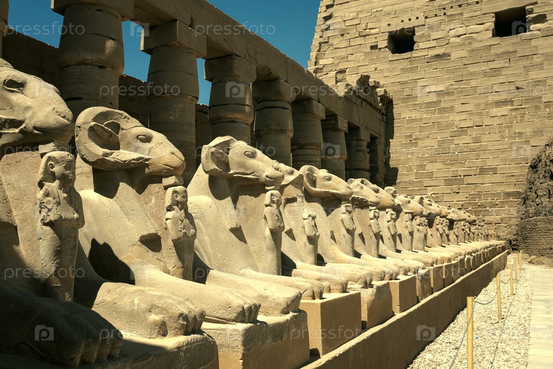 Древние руины Карнакского храма в Луксоре (Фивы), Египет. Самый большой храмовый комплекс древности в мире. Всемирное наследие ЮНЕСКО. Вид с аллеи сфинксов