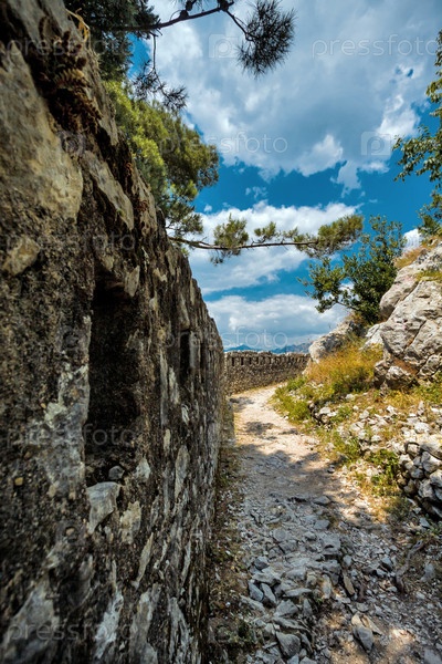 Крепостная стена в городе Котор, в Черногории