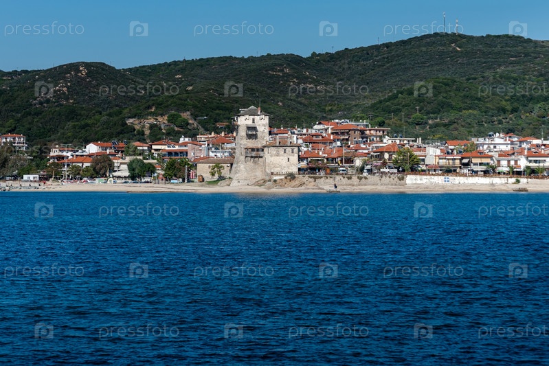 Исторический форт в порту и городе Урануполис, место входа в монастыри горы Афон, Халкидики, Греция